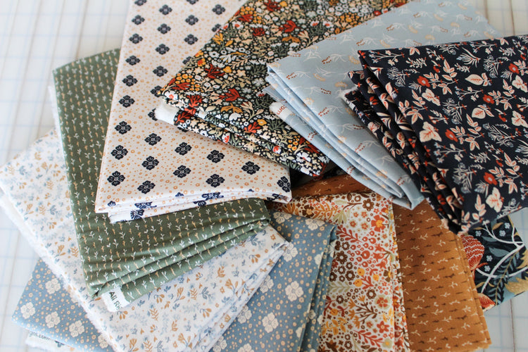 The rich golds, deep blues, balanced creams, and vibrant greens of The Old Garden collection dance together in a way that feels both old and new. With a variety of timeless florals scattered across the hues, it’s a must-have collection for quilts of all kinds.
