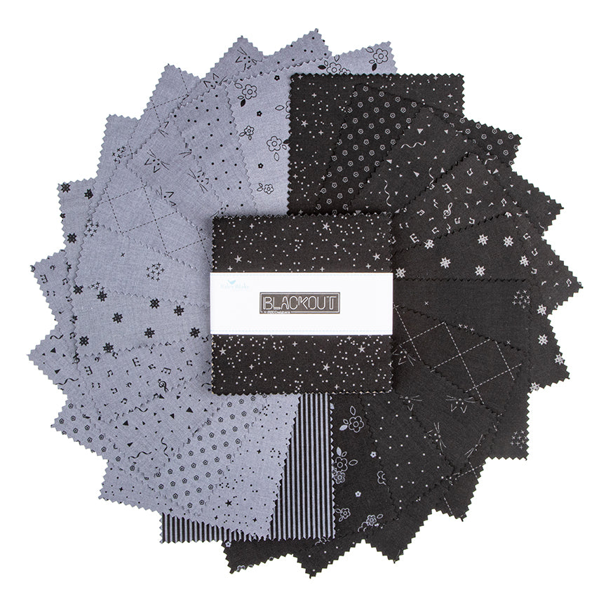 This 5" Stacker precut bundle includes 42 pieces from the Blackout collection by the RBD Designers for Riley Blake Designs. Each print will be included 1-2 times in the bundle.