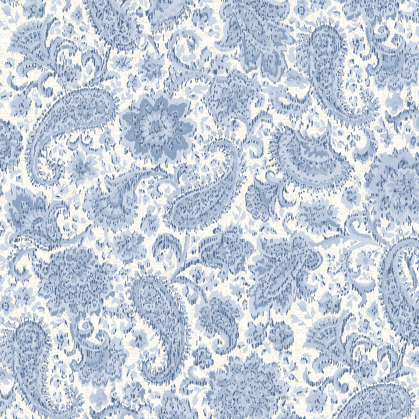 Dive into the elegance of the "Radiance" collection by Kaye England, featuring premium 100% cotton printed sheeting that promises both durability and style for your quilting projects. This fabric offers a soft and smooth finish, perfect for bringing your creative visions to life. The design showcases a sophisticated paisley pattern in soothing shades of blue and white, adding a timeless charm to any quilt.
