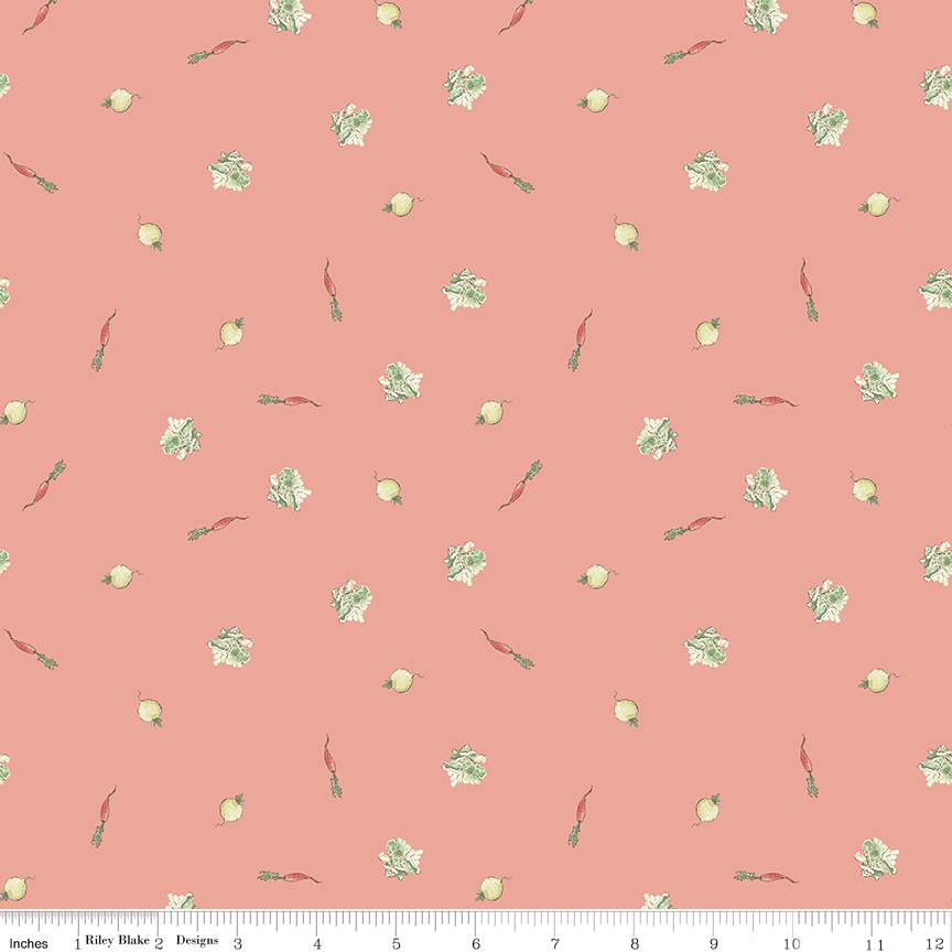 The Tale of Peter Rabbit collection for Riley Blake Designs is great for quilting, apparel and home decor. This print features scattered vegetables. Official licensed product. BEATRIX POTTER™. © Frederick Warne & Co., 2023. All Rights Reserved.