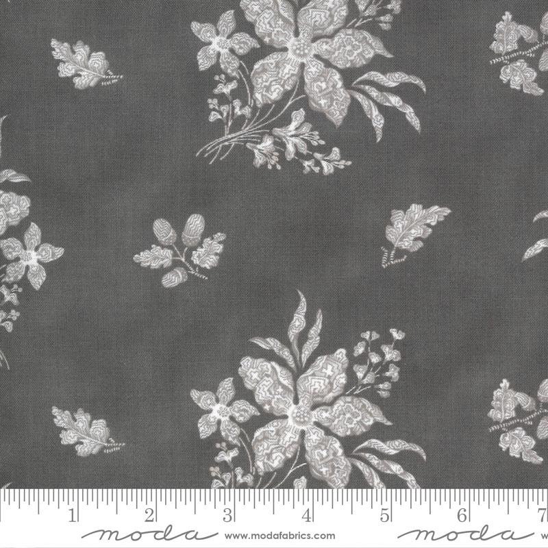 This fabric features delicate floral patterns in soft, muted tones against a rich gray background, creating a timeless and sophisticated look. Perfect for adding a touch of elegance to your quilting projects, it offers a subtle yet striking design that complements both modern and traditional styles.